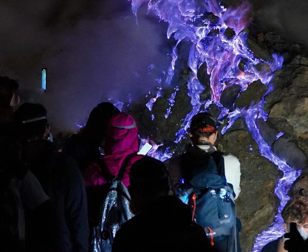 The Ijen Crater is one of Indonesia's natural wonders that offers spectacular views and unique experiences. The blue flames that emerge from burning sulfur gas are one of only two similar phenomena in the world, apart from Iceland.