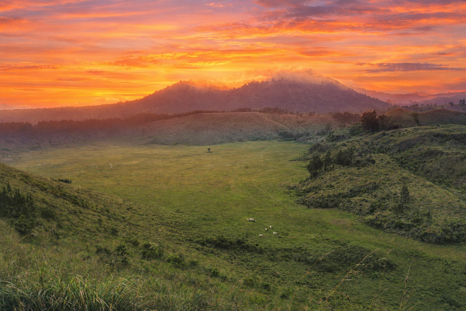 • The Green Crater (Kawah Wurung): Eksplorasi keunikan bentuk kawah mati yang kini ditutupi rumput hijau nan subur, sangat Instagrammable.